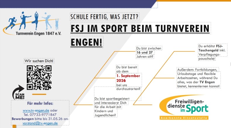 Melde Dich gerne auf der TV Geschäftsstelle: 07733-9771847 oder geschaeftsstelle@tv-engen.de